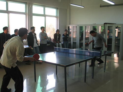 为了迎接我校11月24日举行的2007年度教职工乒乓球比赛,我院工会于11月2日进行教工乒乓球选拔赛,共有十余名教师参加了本次比赛,他们当中既有两鬓白发的老教授,也有去年刚刚加盟的博士,经过激烈的角逐,程义、霍文勇、王耀明、梁志胜、张光伟、李化成等六人取得了参加学校比赛资格。预祝他们在学校乒乓球比赛取得好成绩。