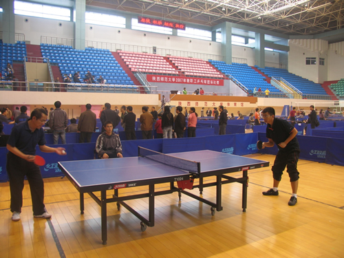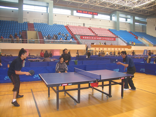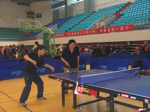 2007年11月24日,我院男女乒乓球队参加了学校2007年教职工乒乓球团体比赛,共有29支男子代表队和28支女子代表队参加了比赛。男队小组赛阶段在战胜计算机科学学院代表队和附中代表队之后以小组第二与机关二队进入十六强,进入淘汰赛之后战胜化学与材料科学学院代表队进入八强,在八进四的比赛中输给物理与信息科学学院代表队止步八强;女队战胜理科基础部代表队顺利进入十六强。