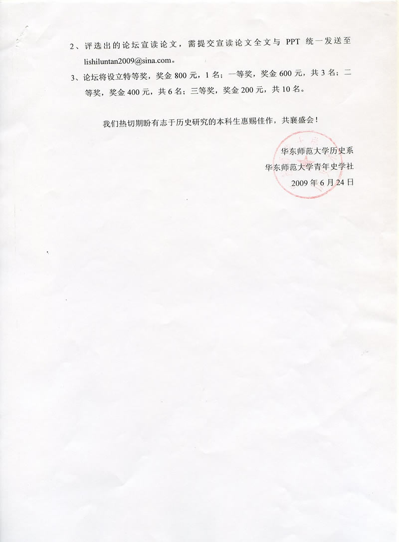 "全国高校历史系本科生学术论坛"将在华东师范大学举行,希望我院本科生积极踊跃参加此项学术活动,相关信息见附件,有意者请与我院近现代史专业老师联系: