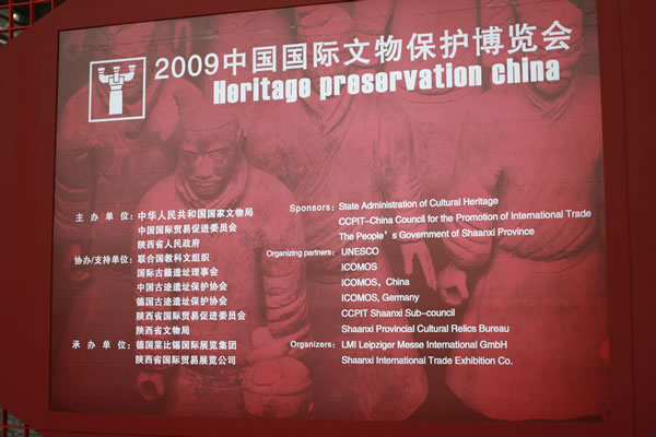 2009年10月29日,我院参加了曲江会展中心举办的“2009年中国国际文物保护博览会”。此次文保会的主办单位有中华人民共和国国家文物局,中国国际贸易促进委员会,陕西省人民政府。此次文保会的单位除国内各地展团、文物局外还吸引了国外各展团的到会,如德国展团,意大利展团等,希望借此机会能够增大国内外各大文博单位的交流学习。最后,预祝此次文保会圆满成功。