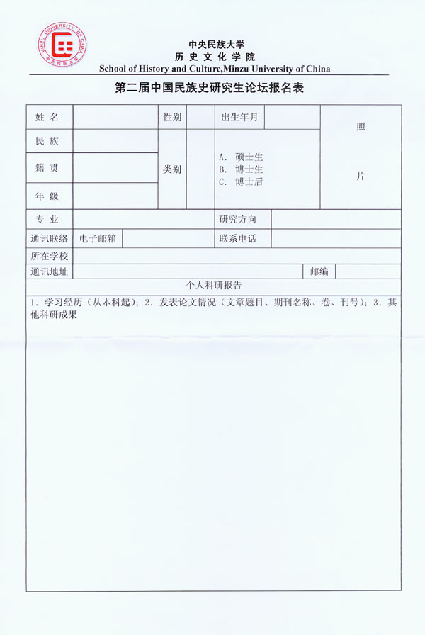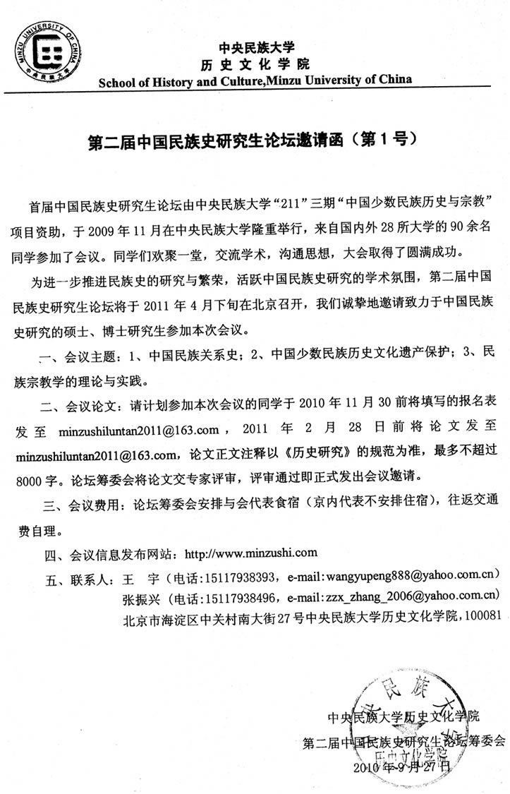 第二届中国民族史研究生论坛邀请