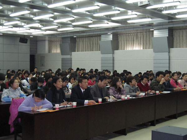 贾二强院长首先代表陕西师范大学正式聘任了赵亚夫博士为兼职教授,对今后赵老师能为我校教师教育发展做出贡献给予厚望。其次,赵老师为师生们作了精彩的讲座。赵老师从当今教师队伍的现状出发,提出必须历练有教育力量的专业教师,并阐述了历史教师发展“三段论”—艺术家,科学家,宗教家。赵老师运用大量的案例和影视教学,旁征博引,深入浅出,同学们获益匪浅。