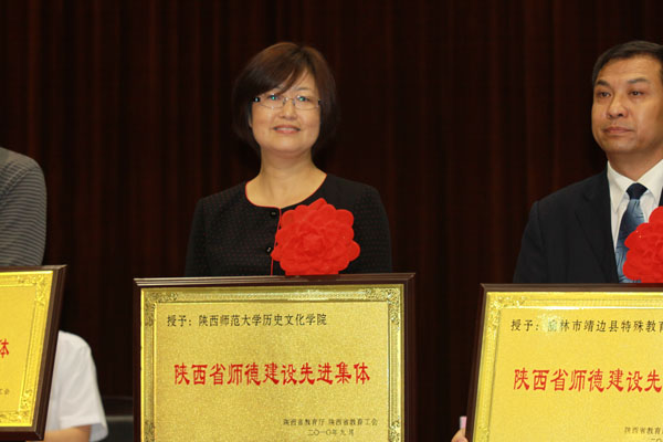 大会表彰了全省第八批特级教师、普通高校教学名师和师德建设先进集体与先进个人。其中,威廉williamhill体育在这次表彰中喜获两项殊荣,一是威廉williamhill体育获“陕西省师德建设先进集体”荣誉称号,二是王双怀教授荣获“陕西普通高校教学名师”称号。威廉williamhill体育党委书记丁虹作为陕西师范大学“陕西省师德建设先进集体”代表上台领奖。