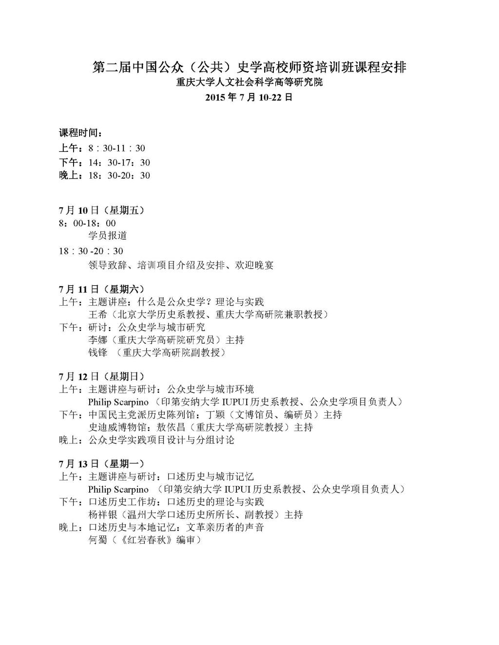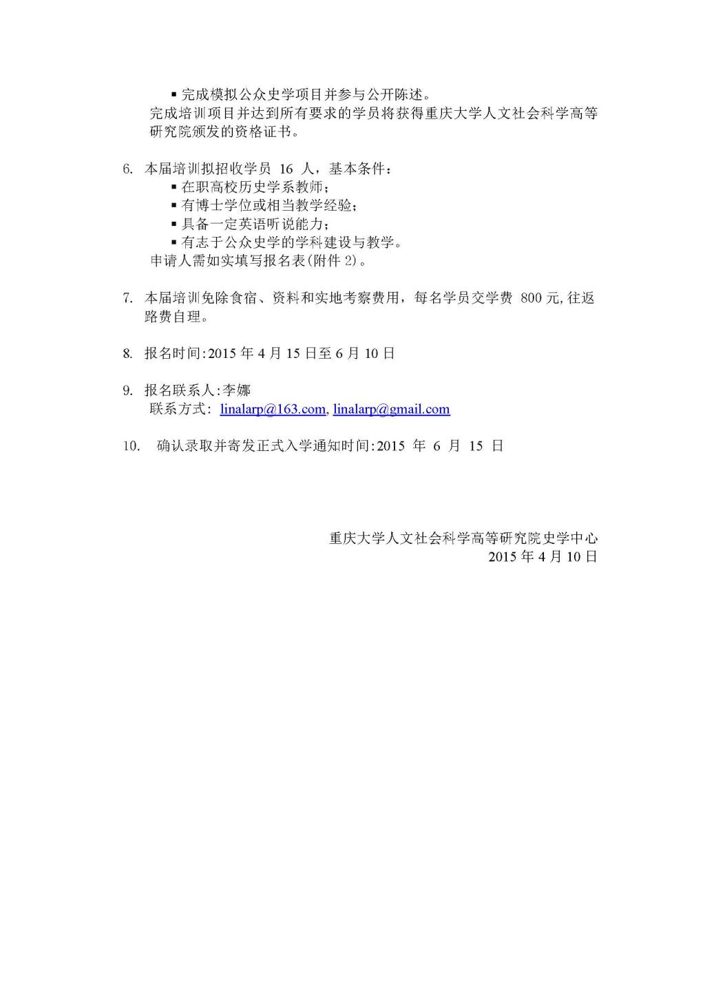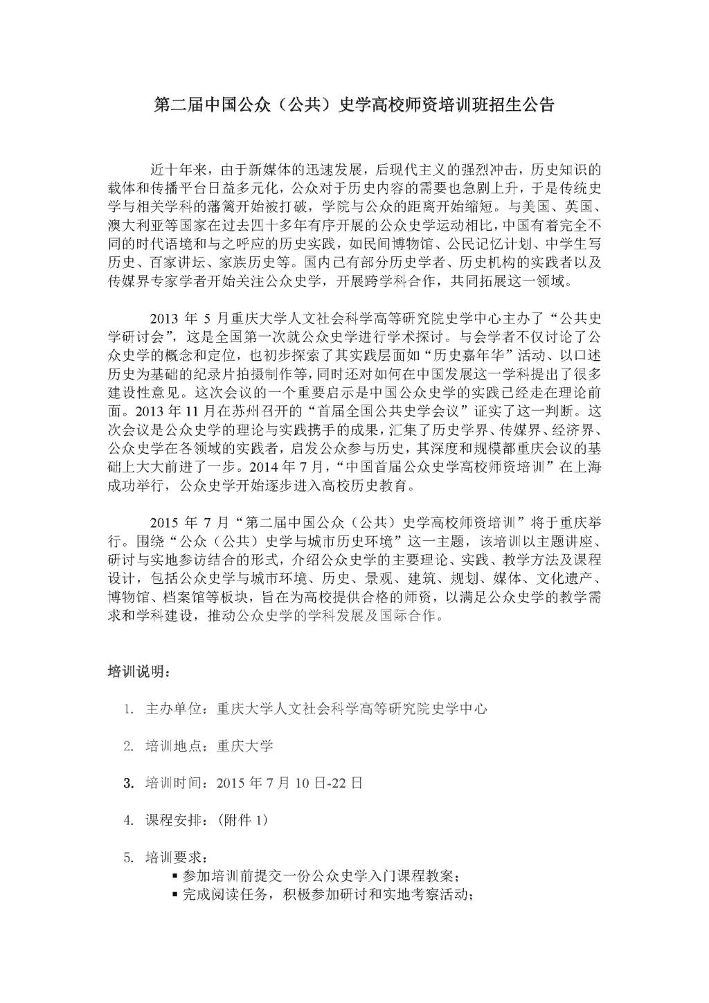 第二届公众史学高校师资培训班招生公告