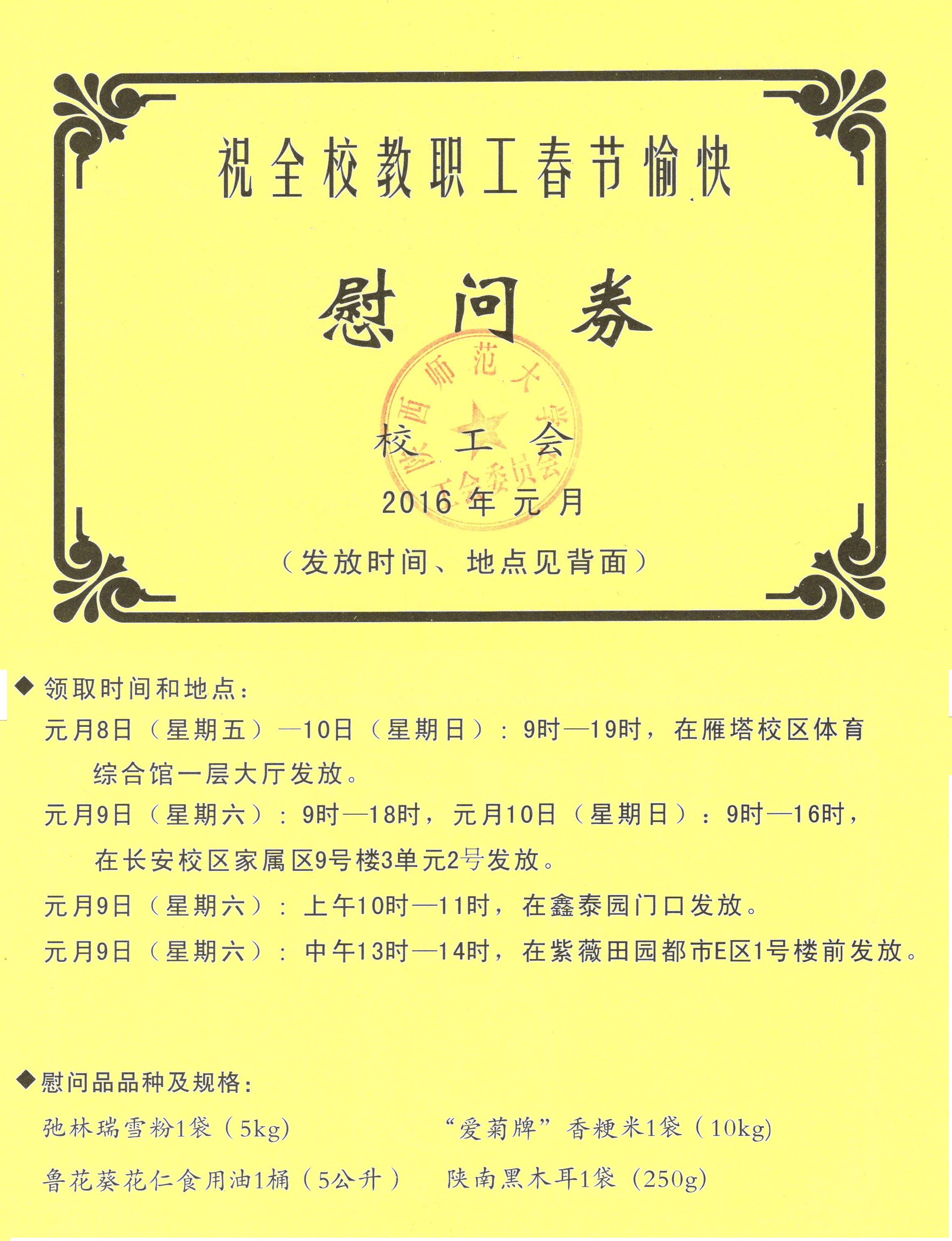 校工会已将2016年春节慰问券发至学院办公室。请各位老师本周内前来院办领取。