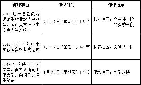 一、2018届陕西省免费师范生就业双选会暨陕西师范大学毕业生春季大型招聘会将于2018年3月17日至18日在我校举办,根据招聘会工作需要,3月17日(星期六)全天将对文津楼一段及文渊楼三段进行封闭管理。