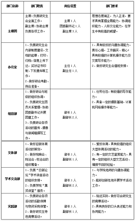3、拟定于6月10日之前,选拔委员会对竞聘人员进行资格审查并确定参加面试人员名单;对通过资格审查的同学进行面试(时间、地点另行通知);最后,公示选拔结果。