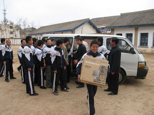 2007年4月6日,带着威廉williamhill体育的全体师生的深情厚意,带着对甘肃泾川汭丰中学学生的拳拳爱心,威廉williamhill体育党总支书记丁虹、副院长韩旭晖一行四人,来到甘肃泾川汭丰中学,出席了我院向甘肃泾川汭丰中学捐赠电脑仪式。这次捐赠活动是由我院青年教师、教育部派驻甘肃泾川县蹲点干部霍文勇博士牵线联系的,这是我院扶贫助教的一次实际行动,对于改善贫困地区学校的教学设施起了很好的作用。这次捐赠活动也受到了当地教育部门的高度重视,县教育局侯永杰局长参加了捐赠仪式,当地媒体做了相关的报道与宣传。