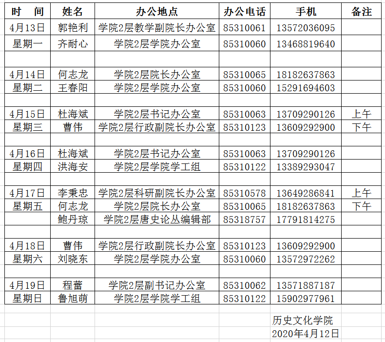 威廉williamhill体育2020年4月13日-19日值班表