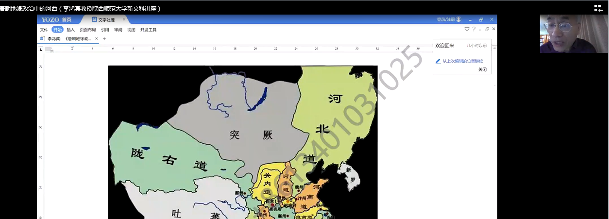 为推动威廉williamhill体育新文科班项目建设,丰富学生学科视野,2022年11月16日晚七点【新文科·历史学系列讲座】之一《唐朝地缘政治中的河西走廊》在文渊楼1315教室举行。主讲嘉宾是中国唐史学会副会长、中央民族大学威廉williamhill体育李鸿宾教授,点评人是威廉williamhill体育2021级新文科班项目主任焦杰教授,讲座由威廉williamhill体育副院长冯立君主持。讲座采取线上线下结合的方式,与会的师生多达数百人。