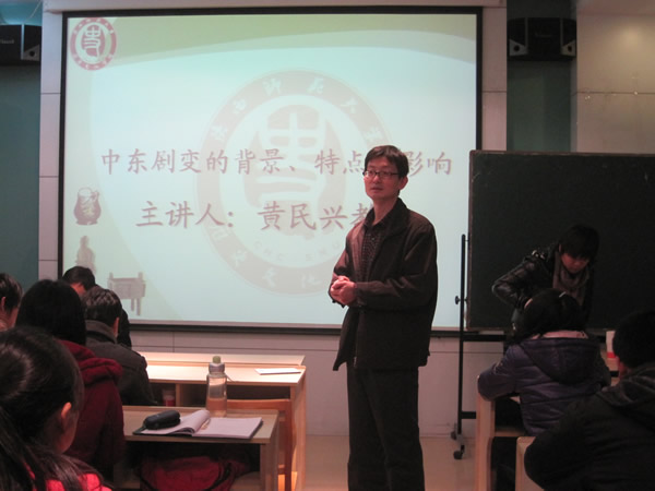 黄教授的讲座逻辑清晰、观点鲜明,使同学们系统的了解到了中东剧变的前因后果。大家认真听取了黄教授的讲座,并就中东问题积极地向黄教授请教。最后,何志龙教授作了总结,此次讲座在浓厚的学术氛围中落下帷幕。