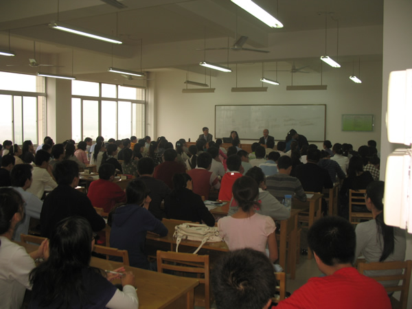 报告结束后,吕女士与参加报告会的同学进行了互动交流,同学们纷纷起立,提出了许多有思想深度,有学术水平问题。如“明代书院讲学对现代教育的启示是什么?”和“杨甲仁‘学以致用’思想在当今的意义是什么?”等等,吕女士都一一作了解答。