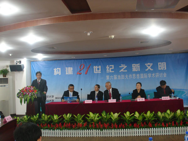 2010年11月5日至7日,作为我校池田大作•池田香峰子研究中心主任,拜根兴教授应邀赴广东中山大学出席由日本创价大学与中山大学联合举办的“构建二十一世纪之新文明:第六届池田大作思想国际学术研讨会”。来自中国高校及研究机构、日本创价大学等150余位学者出席大会,提交论文七十余篇。大会报告后,该研讨会分为四个组讨论,举办方指定拜教授作为第一组组长,主持小组会议兼做评论人,并在随后的大会上做了汇报。日本创价大学与我校建有密切的交流关系,近年来双方各个层面的交流频繁,今年8月末创价学会青年代表团50余人曾访问我校,并与我校联合举办了学术研讨会。