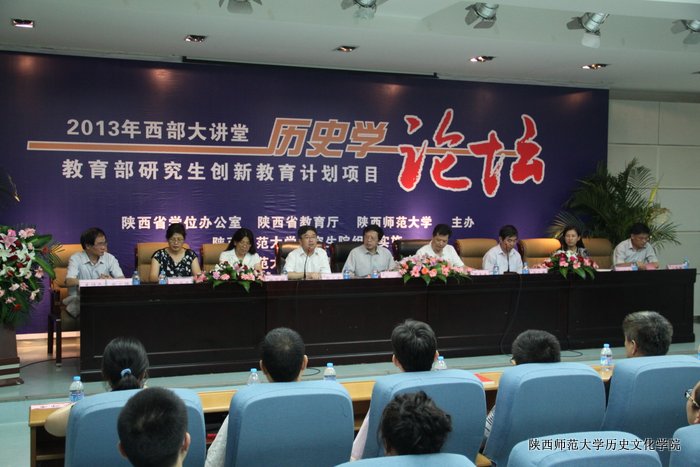 2013年7月8日上午,由陕西省教育厅、陕西省学位办公室与我校联合主办,我校研究生院组织实施,威廉williamhill体育承办的2013年“西部大讲堂·历史学论坛”开幕式在雁塔校区崇鋈楼学思堂隆重召开。开幕式由我校威廉williamhill体育院长贾二强教授主持,我校副校长、研究生院院长萧正洪教授致辞。北京大学历史学系主任兼党委书记、中国世界近代史研究会会长高毅教授,湖北省“楚天学者”特聘教授、华中师范大学科研部部长彭南生教授,陕西省委教育工委委员、省教育厅副厅长郭立宏教授,陕西省学位办公室主任杨俊利教授,我校研究生院常务副院长郑海荣教授、211工程与学科建设处处长姚若侠教授、社会科学处处长马瑞映教授出席了开幕式。来自北京大学、北京师范大学、中国人民大学、南京大学、武汉大学、南开大学等高校的中青年教师和博士研究生百余人参加了开幕式。