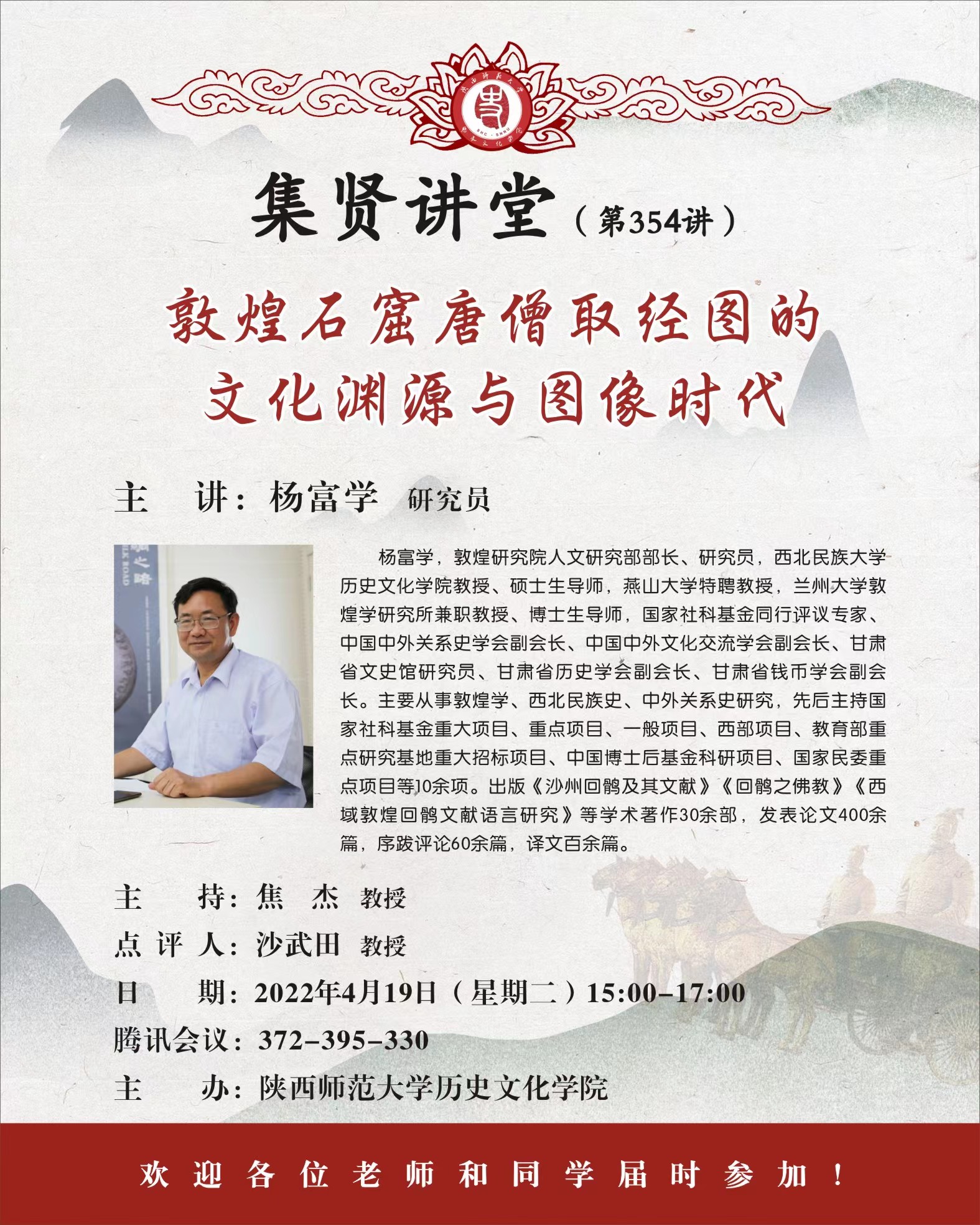 集贤讲堂第354讲:敦煌石窟唐僧取经图的文化渊源与图像时代