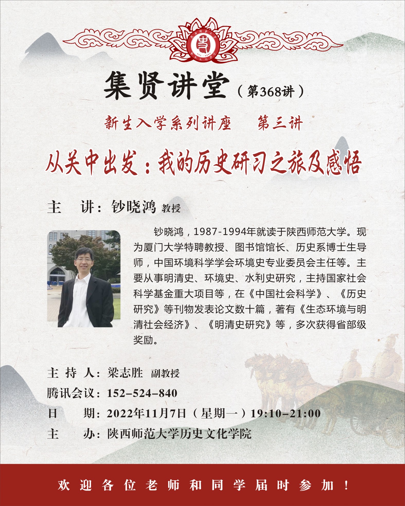 集贤讲堂第368讲:从关中出发——我的历史研习之旅及感悟