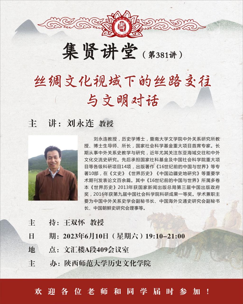 集贤讲堂第381讲:丝绸文化视域下的丝路交往与文明对话