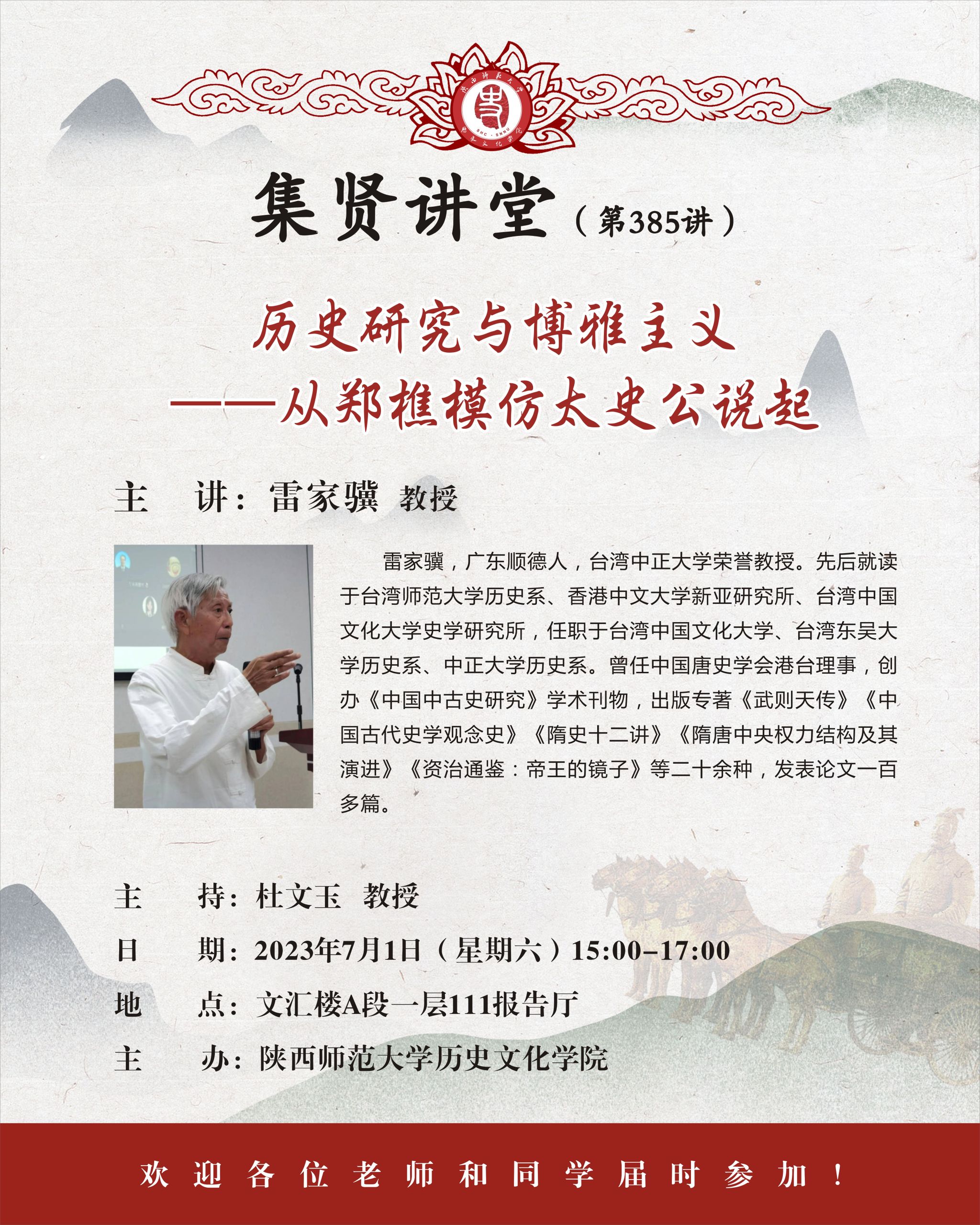 集贤讲堂第385讲:历史研究与博雅主义——从郑樵模仿太史公说起