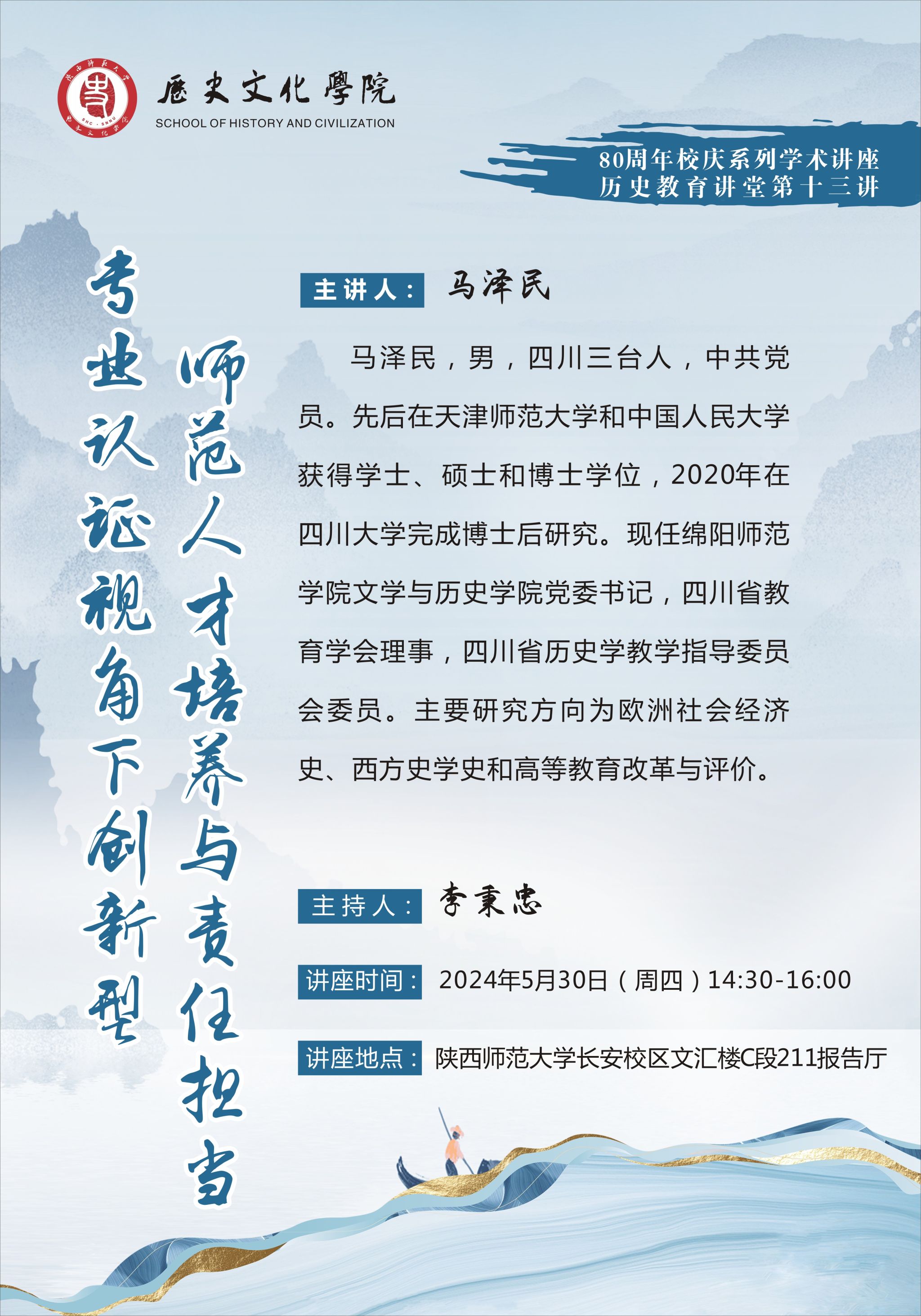 历史教育讲堂第十三讲:专业认证视角下创新型师范人才培养与责任担当