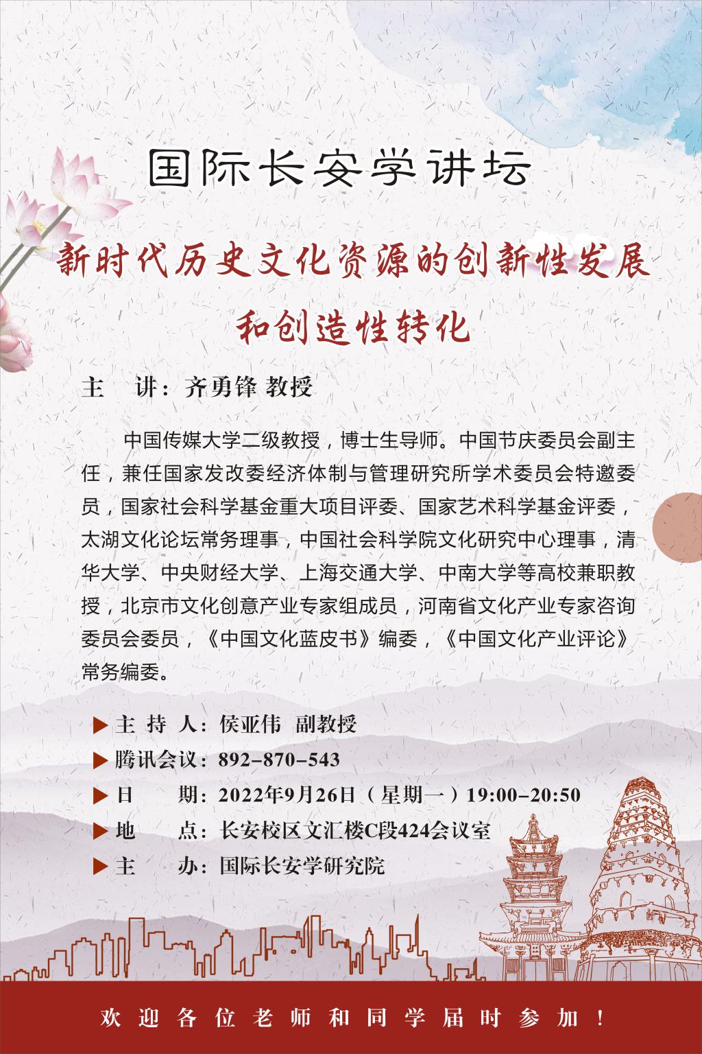 国际长安学讲坛: 新时代历史文化资源的创新性发展和创造性转化