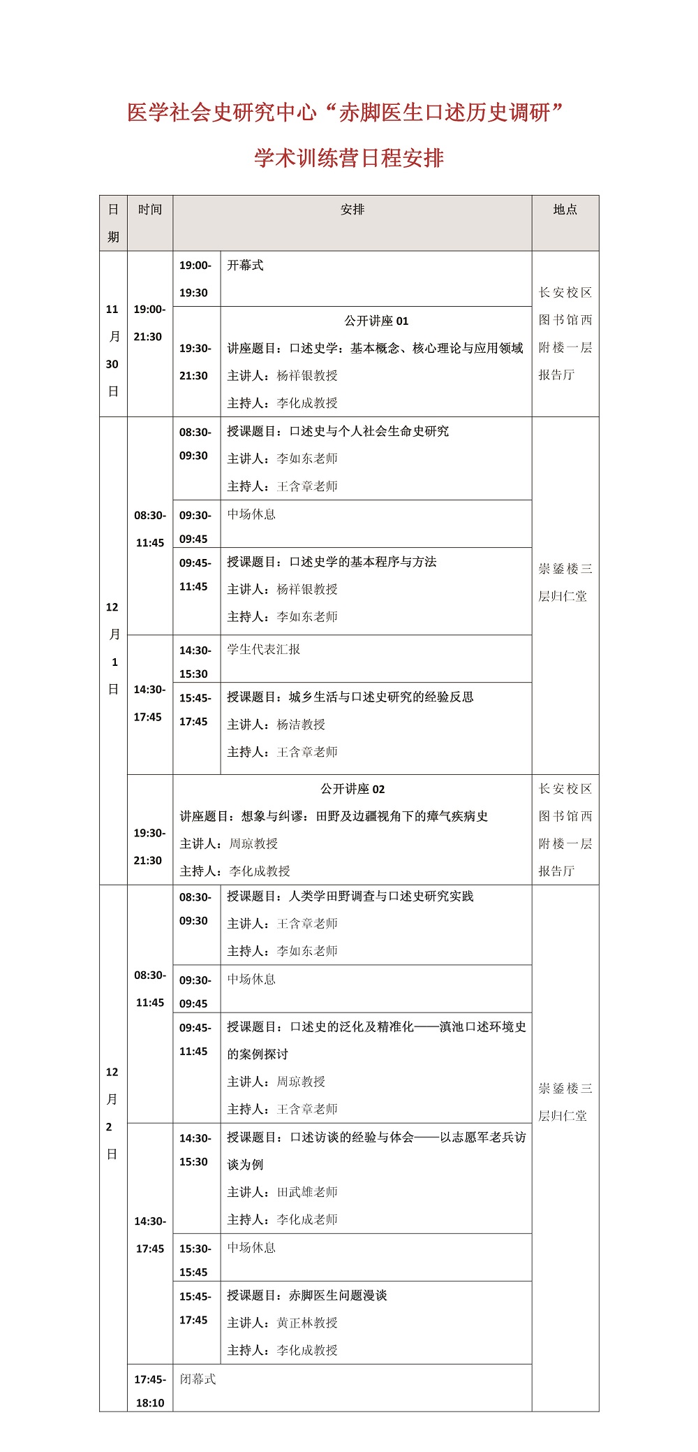 附件1:2018年“赤脚医生口述历史调研”学术训练营日程表