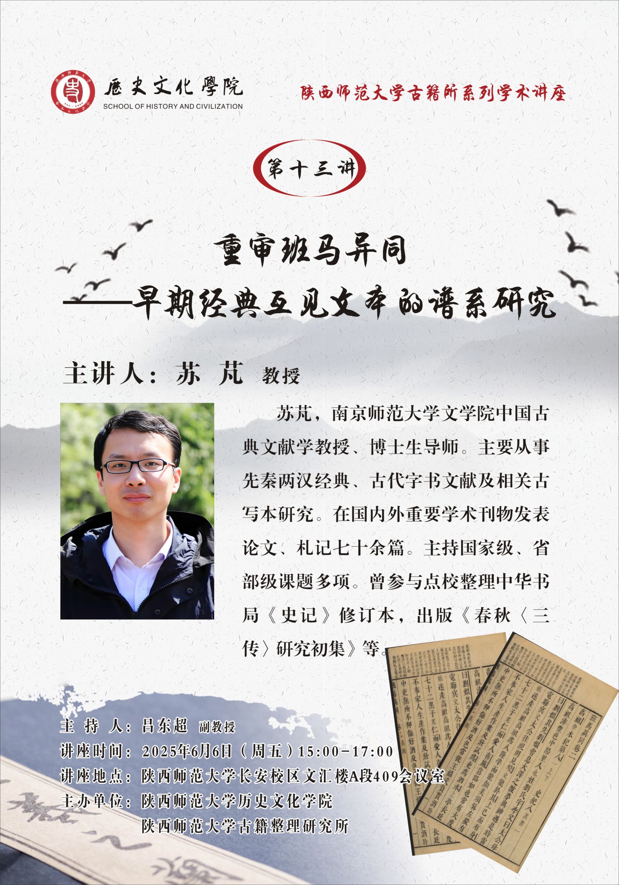 威廉williamhill体育所系列学术讲座 第十三讲:重审班马异同——早期经典互见文本的谱系研究