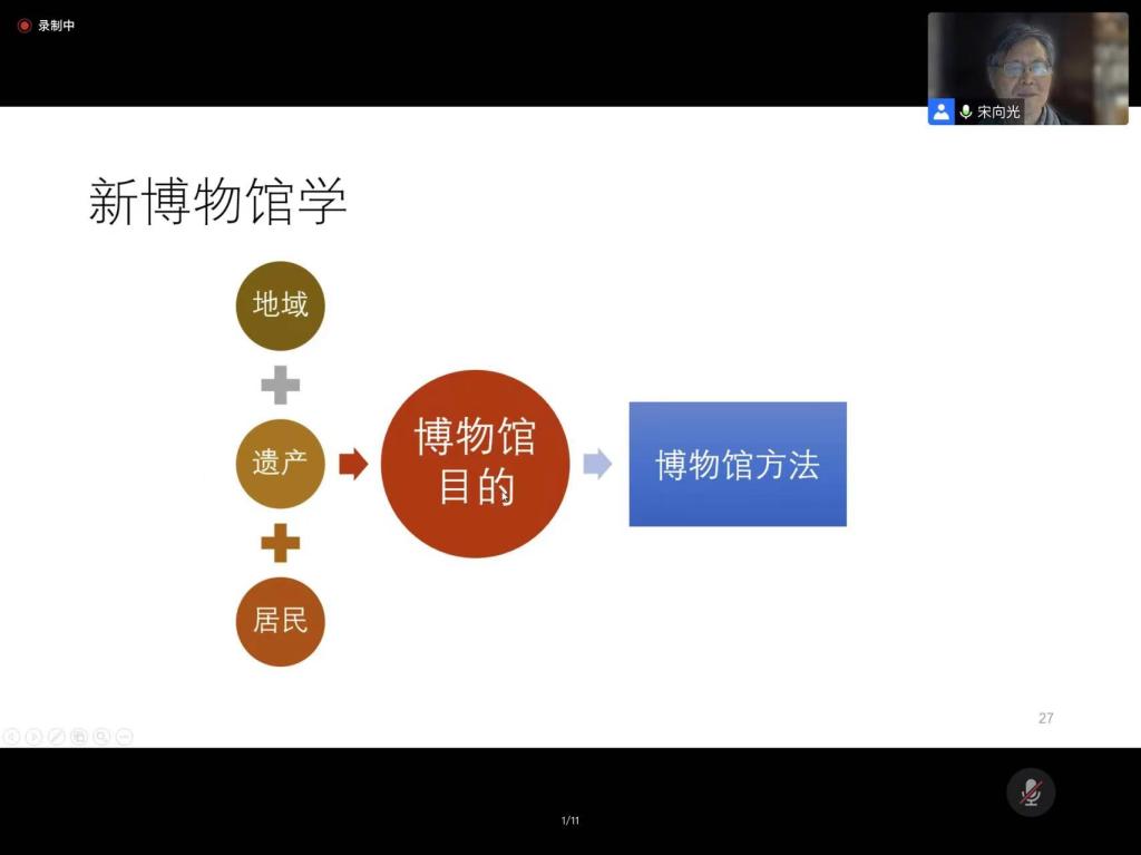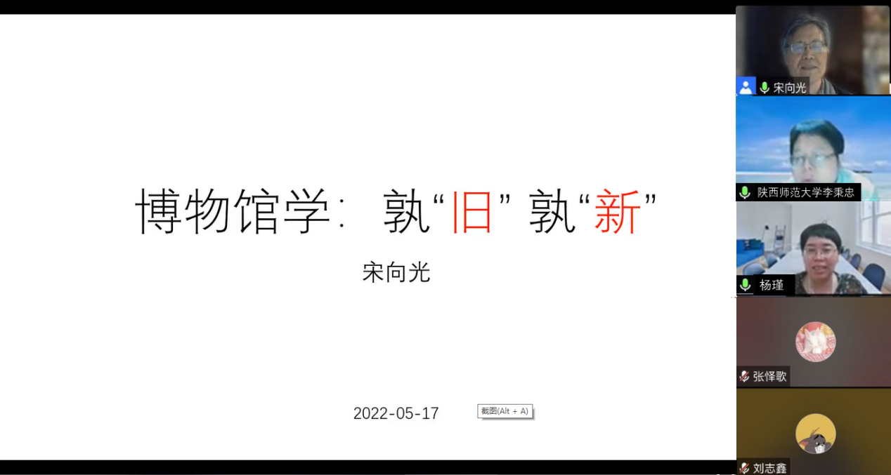 5月17日晚,正值国际博物馆日前夕,集贤讲堂第355讲在线上举行。应我院邀请,北京大学考古文博学院教授、中国社会科学院研究生院硕导宋向光教授做了题为《博物馆学:孰“旧”孰“新”?》的专题报告。威廉williamhill体育院长李秉忠教授、文博专业的相关师生以及校外人员共计150余人参加了此次活动。活动由杨瑾教授主持。