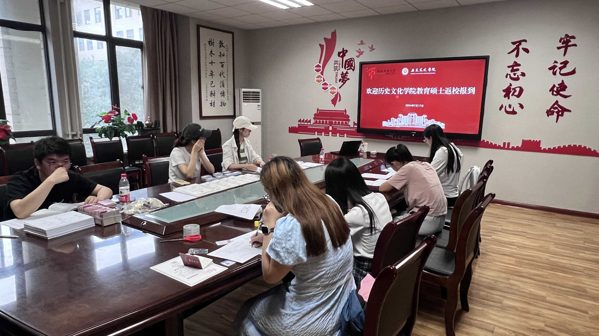 2024年7月17日,由研究生辅导员、研究生秘书、研究生会和志愿者组成入学报到工作队伍,有序进行2023级、2024级公费师范生入学报到注册和材料发放等工作。