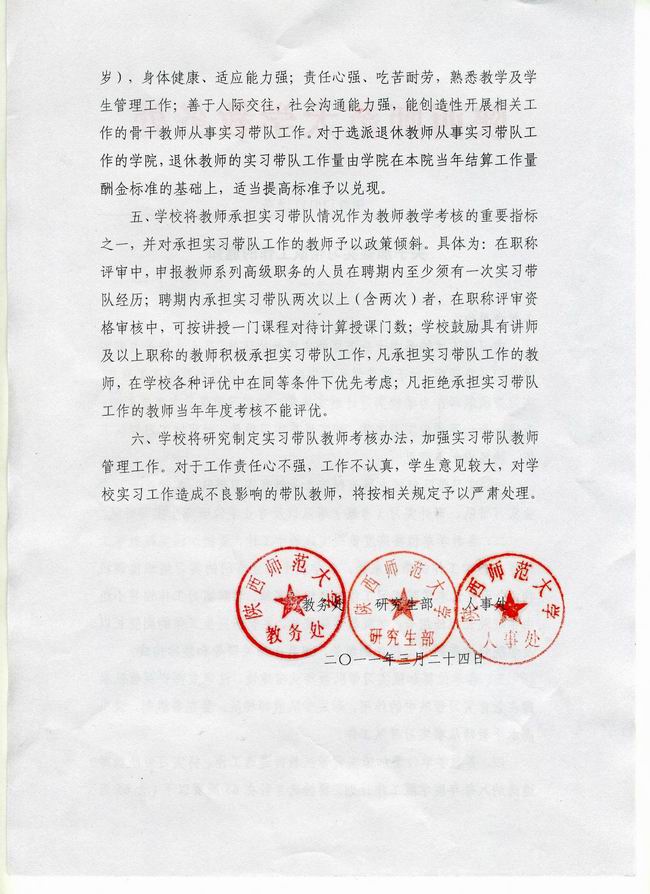 关于遴选2011年秋季学期教育实习带队教师的通知