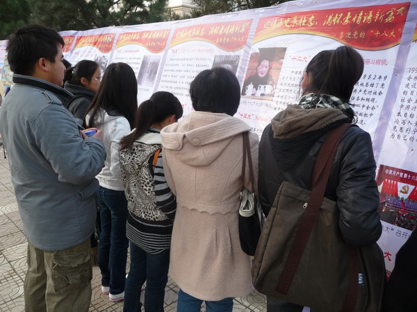 (通讯员 杨婧、童盟、谭晓梅)党史记心中,昂首踏征程。为了迎接中国共产党第十八次全国代表大会的召开,11月6日下午19:00,威廉williamhill体育在长安校区图书馆的东侧,展出题为“回眸历史承壮志,满怀豪情谱新篇——喜迎党的‘十八大’” 的系列宣传板。