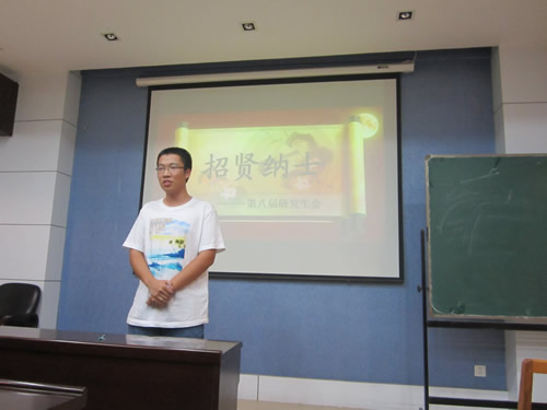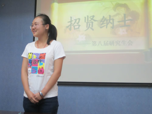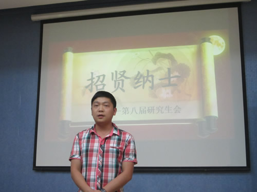 研究生会主席朱闪首先对2013级参加研会纳新的同学表示热烈的欢迎,接着介绍了研会各部门情况及竞选流程。接下来,大会把时间留给了前来参加竞聘的同学,同学们纷纷上台演讲。新生各展所能,纳新活动紧张而又不失幽默风趣,王梦总结了其赴美留学和社会实践经验,顾玲展示了其新闻编辑的扎实功底,王昊婓以其大学本科丰富的学生工作经验和良好的工作能力,赢得热烈的掌声,将会议推向高潮。竞聘过程中,同学们都认真回答研会主席团及各部部长提问的一些问题,并对研会的工作提出了一些宝贵的建议。