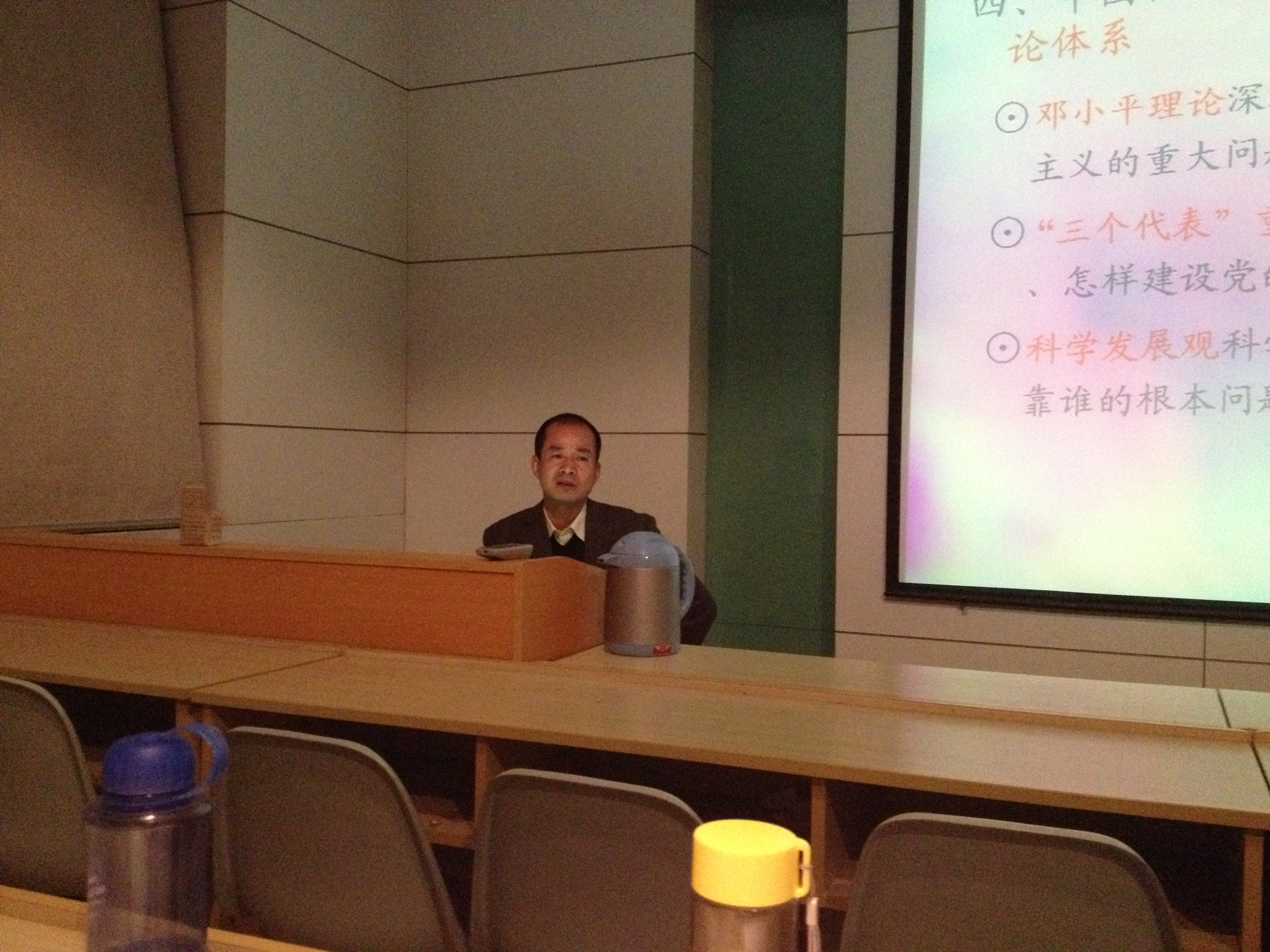 典礼结束后,由新闻与传播学院党委书记袁一芳主讲的以“中国共产党与时俱进的指导思想”为主题的第一场讲座开始。