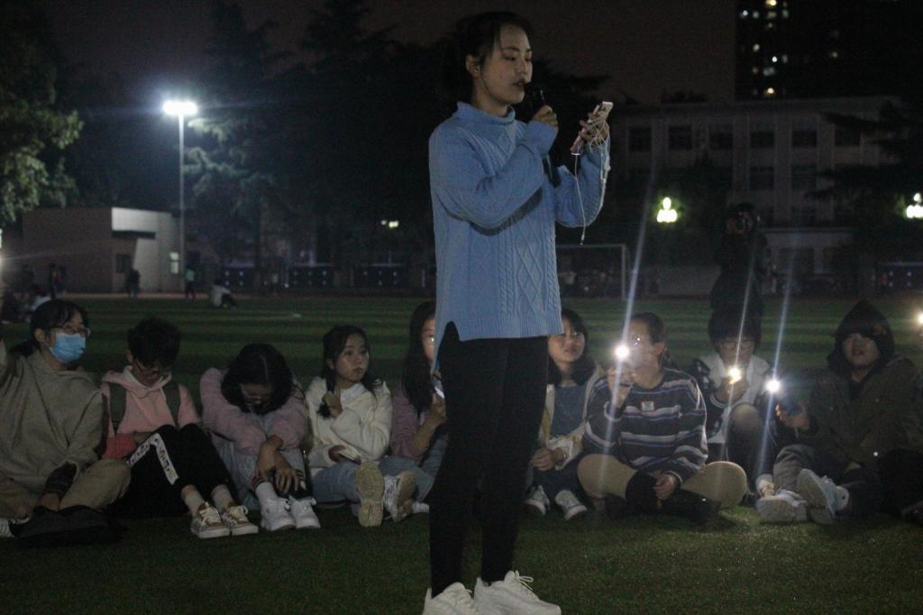 活动开始,文体委员组织同学原地围成圈坐下,并向同学介绍当晚活动流程,活动分为四项,即个人简单自我介绍,才艺表演,玩游戏和总结活动意义。