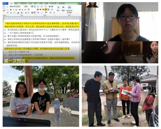 2020年8月至10月,经过前期培训,来自北京大学、武汉大学、吉林大学、南京大学、厦门大学、陕西师范大学等二十五所高校的61名学生分五大调研组对当地的乡村医生或者新冠肺炎疫情抗击者进行口述访谈。队员们严格遵守疫情防控工作要求,在各自的居住地分头行动,寻找合适的受访者,通过预防或熟人联络同受访者建立情感联系,根据具体情况,灵活调整访谈大纲,形成更为具体的访谈提纲。调研员们在小组群中以视频会议的方式进行了多次细致的商讨,为正式访谈打下了坚实的基础。正式采访中,大家则基于前期周密的准备,对受访者展开深入访谈,并由家人或朋友协助,完成口述现场的录音、录像和摄影工作。