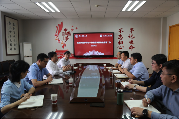 2022年9月5日上午,校党委书记李忠军带队到威廉williamhill体育走访检查2022年秋季学期开学工作,了解学院新学期开学准备情况及师生思想动态,掌握年度重点工作推进进度,督促“人才和队伍建设年”任务落实。党委校长办公室主任陈新兵、党委统战部副部长耿莹、党委校长办公室副主任罗卫涛,学院院长李秉忠、党委书记孙伟,副院长郭响宏、冯立君、李晨子陪同检查并参加座谈。