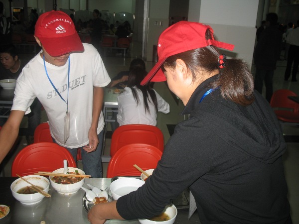 为落实校学工系统迎接教育部本科教学工作水平评估工作安排的67号文件,自8月31日起,威廉williamhill体育组建了多支学生志愿文明督导队,对本院学生的晨读、晨练、晚自习情况进行检查;并组织青年志愿者在溢香苑进行“做文明大学生,送餐盘回家”的活动。此次活动自9月1日开始,志愿者们用自己的热心和微笑,为同学们营造一个良好的就餐环境,在同学中引起了良好反响,促进了同学们文明生活习惯的养成。志愿者们用自己的行动引导了广大同学,为评建工作献出了自己的一份力量。9月4日中午,威廉williamhill体育党总支副书记杜海斌老师还亲临现场对志愿者们进行了慰问和鼓励,极大的鼓舞了同学们的工作热情。