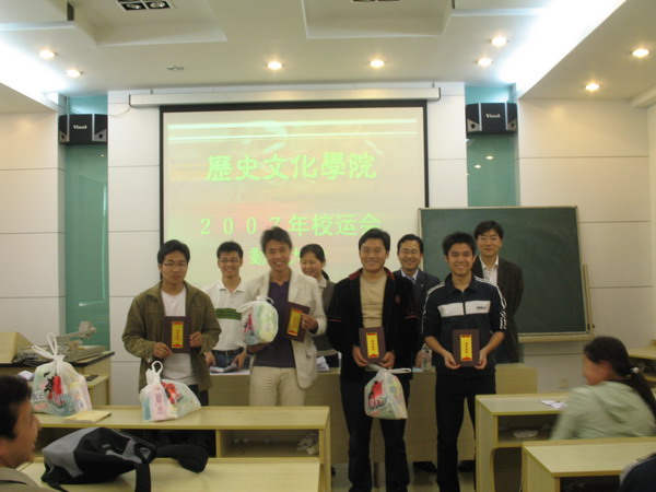 会议由王耀明老师主持。会场气氛热烈融洽,学生会文体部部长吴德政同学首先宣读了运动员名单,大会接下来对在我院体育工作中做出突出贡献的高杰等5名同学进行了表彰,颁发了证书和奖品,并由高杰同学代表获奖同学进行了简短的发言。随后,运动员代表、各年级辅导员老师、学生代表依次进行了发言。老师们表达了对本次代表我院参赛同学的信任与感谢,并希望同学们能够充分利用最后冲刺的时间,克服困难、刻苦训练、继往开来、再创佳绩;同学们则表示,一定尽己所能,努力为学院赢得荣誉。