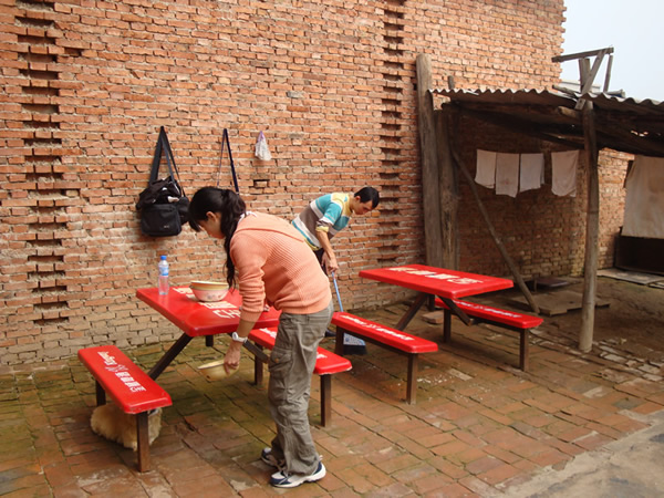 队员们在到达活动地点后,首先向管理人员赠送了带来的流浪狗食物,之后迅速地熟悉了周围环境。活动第一项是打扫卫生,包括清扫狗毛、清理粪便,队员们不怕脏不怕累,出色的完成了任务;活动第二项是帮忙准备流浪狗中午的食物,队员们花费了一个多小时的时间将两大盆馒头搓成碎末,拌上肝脏,麦麸等杂粮,之后协助管理人员分发食物,在流浪狗吃完后又对场地进行了清扫。活动在下午一点结束。