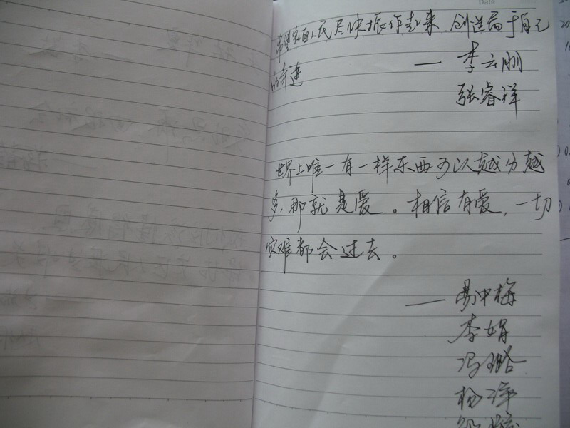 在捐献爱心的同时,同学们还纷纷留言,写下了对灾区人民真诚的祝福。有同学写到:“受助思源,回报社会。”另一位没有留下姓名的四川籍同学写到:“对不起,四川,在您最需要我的时候我却不在您的身边。”据了解,在本次募捐活动之前,大部分同学已通过手机短信等形式参加了募捐,部分同学通过无偿献血表达自己对受灾群众的一片关怀。