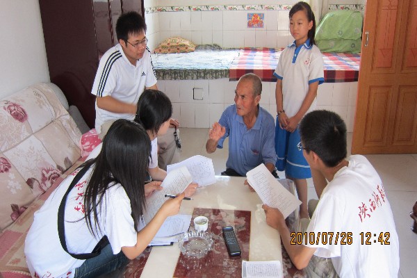 为了进一步了解当地村民对新农村建设以及生态建设政策的认识,实践团队划分几个小组深入对茶坊村村民进行问卷调查。问卷调查有两个方面:一是新农村文化建设问卷调查,二是安塞生态农业发展问卷调查。问卷涉及新农村文化建设的基本概况、村民业余文化生活、对发展生态农业的态度、生态农业与其经济收入、生态文化旅游,以及在这过程中遇到的相关问题及意见征询等50多个问题。在村民的积极配合下队员们调查取得了良好的效果。调查的结果普遍反映了人们生活水平提高,生活的质量也得到很大改善,并认为生态环境的变化与退耕还林的政策有着直接的关系。该村在新农村建设过程不断创新,已形成一定自己特色,曾多次获荣誉称号,如 “新农村建设先进集体”、“敬老模范村”、“退耕还林工作先进集体”等等。此外,修建了一个较大的文化广场,以方便村民休闲和锻炼身体。农闲时还举办多种活动丰富村民的业余文化生活,如剪纸、腰鼓会以及农民运动会,深受村民的赞誉。通过深入调研,实践团队深刻感受了安塞农村建设正以崭新的新面貌不断地在发展。