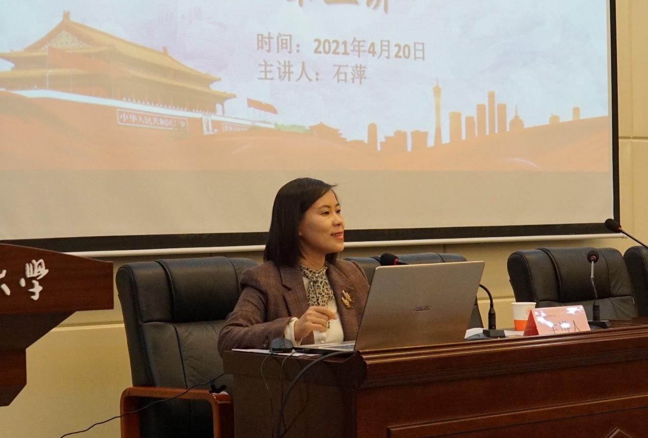 在讲座开始前,洪海安老师向同学们介绍了石萍老师与朱尉老师,希望大家通过课堂学习能够提升写作能力,了解中国青年在历史中的责任,并立鸿鹄之志,“让青春在奉献中焕发绚丽风采”。