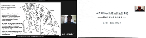 26日下午专题发言采取线上参加,同声传译的方式。分别由陕西师范大学教授杨瑾和复旦大学教授余欣主持。