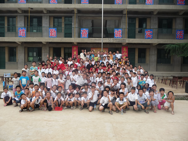 汇报演出在三年级一班带来的《大中国》中徐徐拉开序幕,孩子们用天真烂漫的声音,将深埋于心中的对祖国的热爱充分展现,当歌曲进入高潮阶段时,一张由三年级一班全体同学集体绘制的长卷缓缓展开,长卷上不仅有孩子们用稚嫩的笔触画出的美好世界,还有各位志愿者成员写下的对所有孩子们最诚挚的祝福。接着,五年级二班为大家带来舞台剧《晏子使楚》,展示了春秋时期齐国著名外交家晏子的睿智。一段由四年级一班和二班联袂呈现的《校园华尔兹》,展现高塘镇北村中心小学孩子们的阳光与朝气。然后,本次实践活动成员谭晓梅代表志愿者发言,发言中她与大家分享了九天支教过程中的酸甜苦辣,并希望北村中心小学的孩子们能够在今后的学习中百尺竿头更进一步。紧接着,五年级二班的同学们轮番登台,为大家带来了一段激情四射的歌曲串烧。三年级二班的诗朗诵《啊,祖国妈妈》则体现出少先队员对祖国母亲的无比热爱之情。随后,一段由本次实践活动全体志愿者成员带来充满动感活力的歌伴舞《最炫“高塘”风》则将本次汇报演出推向高潮。最后,一曲由四年级一班献上的合唱《让世界充满爱》为本次汇报演出画上圆满句号。在孩子们经久不息的掌声欢呼中,全体师生走上舞台合影留念。