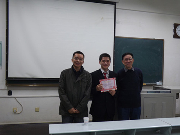 讲课完毕之后两位老师分别做了点评。李老师先总的讲解了讲课中的音调、语速、教态、心理、课件制作等方面应注意的问题,然后对各位参赛选手分别进行了点评,霍老师轻松幽默地对各位选手也做了点评,两位老师在指出问题的同时也给了同学们一些提高教学技能的建议。最后根据两位老师所打的分数评出了一等奖一名、二等奖两名和三等奖三名,并由两位老师进行了颁奖。