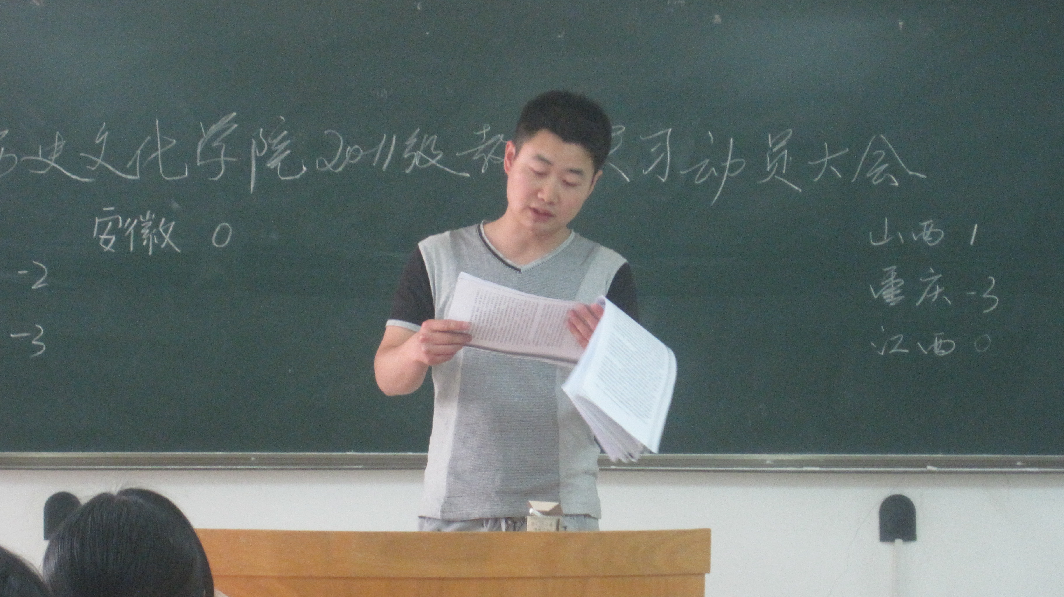 2014年6月11日下午4点30分,威廉williamhill体育在文津楼101教室举行2011级师范生实习动员大会,出席会议的有副院长吕亚虎,学院党总支副书记杜海斌,会议由2011级辅导员张志祥主持。