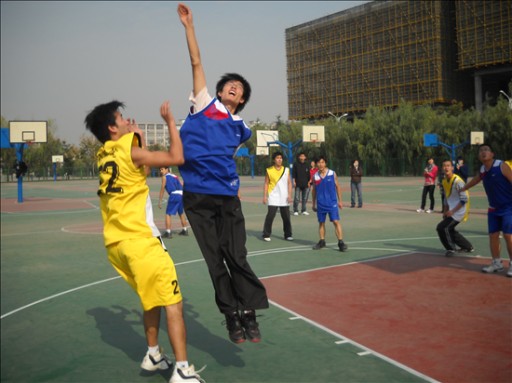 11月上旬的天气虽寒,却挡不住我院男篮队员和拉拉队同学的热情,大家依然提前到达篮球场,迫不及待的等待两队的巅峰对决。比赛在我院拉拉队的热烈掌声中开始,并迅速展开对攻。双方队员都表现出了娴熟的篮球技术,引来了场下的同学们的一阵阵欢呼。大家为队员加油的呐喊声一浪高过一浪,响彻整个球场,展现了我院团结奋进的精神面貌。在双方队员激烈的争夺不时引来一个个小高潮,男篮们那优美的投篮身姿、娴熟的运球技术也成为本场比赛的一个个亮点。