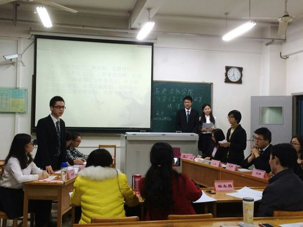 决赛由2012级古典文献班和2012级文物与博物馆班两支代表队参加。精彩的开场后,主持人详细介绍了比赛规则,双方围绕“诚信靠自律还是他律” 的辩题进行了火热的辩论。双方辩手思维活跃,口才出众,攻辩自如,问答有序,富有组织性与灵动性的语言,不时激起观众的阵阵掌声,尤其是精彩的自由辩论,更是将辩论推向高潮,辩论现场紧张激烈。最终,2012级文物与博物馆班获得此次辩论赛冠军。