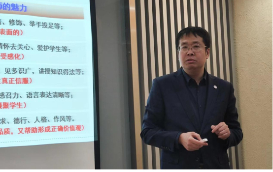 贺胜利老师强调了国家重大决策对教师事业发展的重大意义,他以“十四五”规划纲要为例,围绕“对校园而言什么最重要”展开讨论,对硬件、老师、校风、家风、传承等多方面因素进行探讨,以教育现实问题为参照对理想的教育应当是什么样的、应当培养什么样的人作了深度阐发。贺胜利老师结合交大附中的教学管理与生涯教育实践,向在场同学提出了众多教学经验与生涯规划选择思考,以行路致远、砥砺前行的态度接续奋斗。