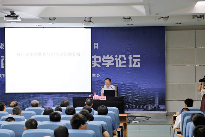 7月12日上午,第十一届“西部大讲堂•历史学论坛”第五讲在雁塔校区崇鋈楼学思堂开讲。本场是中国近现代史专题报告,报告题目为《抗日战争的胜利与中华民族的复兴》,由著名民国史学家、中国社会科学院世界史研究所研究员、副所长汪朝光主讲,我院黄正林教授主持。