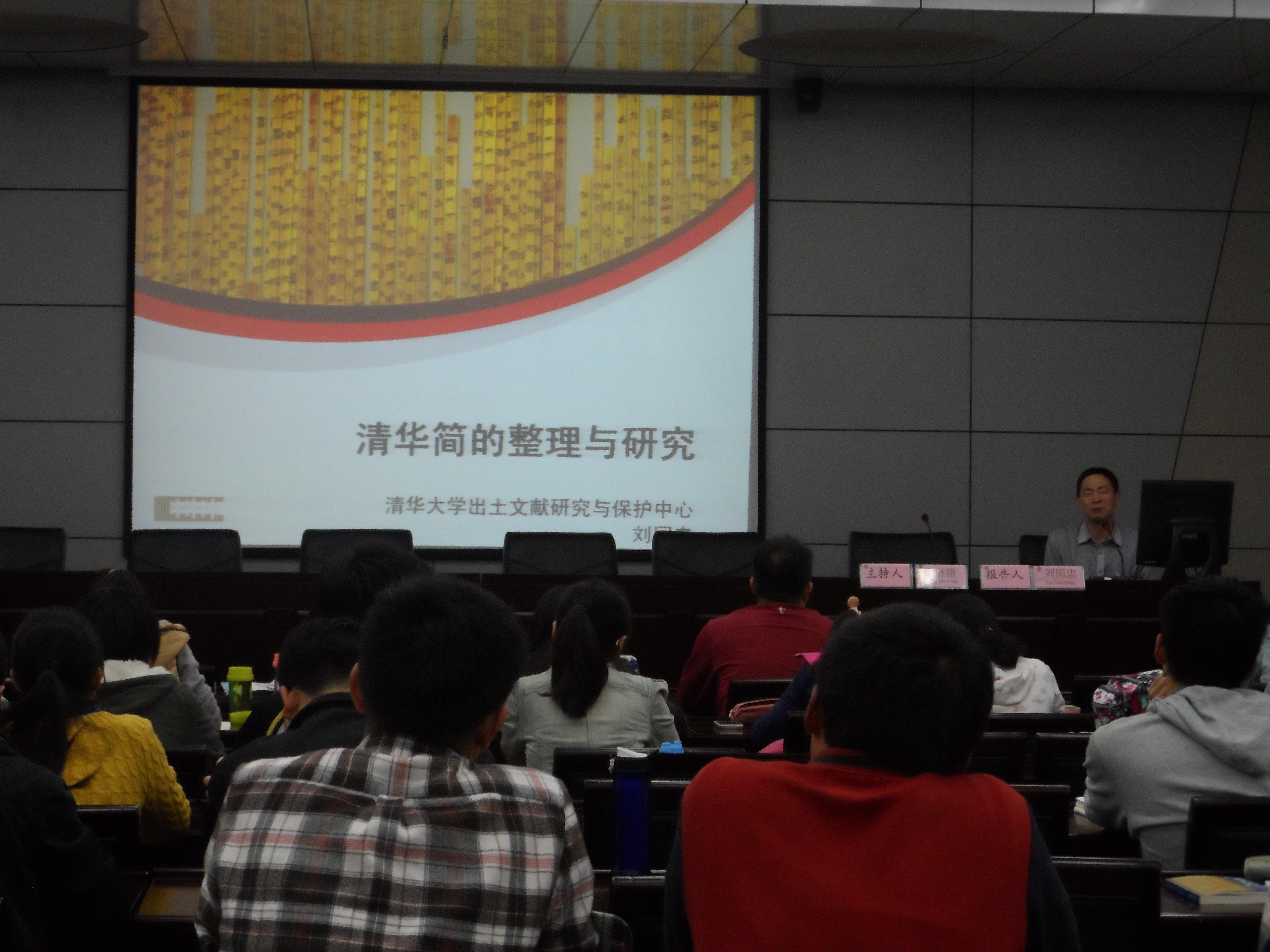 刘教授的讲座从“关于竹帛”、“清华简的入藏与整理过程”和“清华简与古代文史研究”三方面展开。首先,刘教授简要介绍了书帛作为书写材料的历史演变过程。《尚书·多士》记载:“惟殷先民,有册有典。”据此推测至晚从商代开始,竹、木简已成为我国先民最基本的书写材料,春秋时期,帛作为书写材料。其次,刘教授详细介绍了清华简从购买、抢救保护到整理研究的曲折过程。从2008年7月,清华简入藏清华到2013年清华简第四辑整理报告的出版,清华大学及社会各界人士都做出了巨大贡献。最后,刘教授归纳了清华简的研究对古代文史研究意义。清华简作为以记载书籍为主的战国竹简,对我们研究先秦时期的《尚书》等经作、学术文献及类似典籍,对于中国学术史、历史学、文献学等许多学科有重大作用。同时,刘教授还指出目前清华简的研究还很肤浅,其研究还有待继续深入。